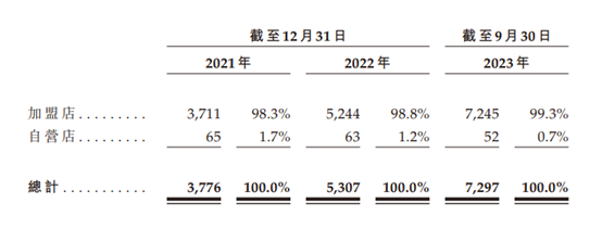 据了解,沪上阿姨采取以加盟为重点的业务模式。截至2023年9月30日,沪上阿姨的7297间门店中,有99.3%的门店(7245间)由加盟商经营。沪上阿姨的收入绝大部分来自加盟业务,主要包括销售货物和加盟服务。截至2023年9月30日,在沪上阿姨的4284名加盟商中,有32.3%的加盟商(1382名)开设一间以上的门店。