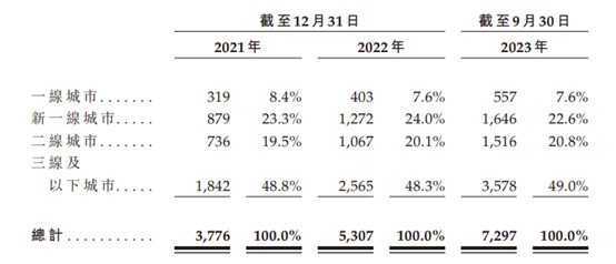 图注:沪上阿姨按城市级别划分全系统门店的明细
